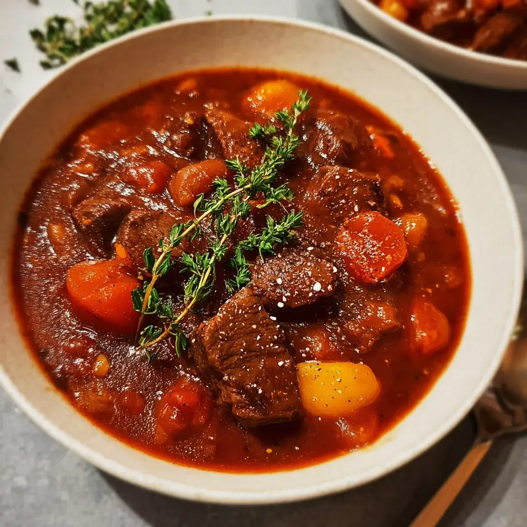 There are some meals that are more than just sustenance; they are a tradition, a scent that defines a season, a culinary anchor in the memories of a family. For my family, this Beef Tomato Stew is that meal. It’s the official dish that signals the true arrival of autumn, the one my kids request the moment the first cool breeze blows through the last days of summer. I can still trace its origins back to my grandmother’s kitchen, a place that always smelled of simmering onions and herbs. Her version was a marvel of simplicity and flavor, a testament to her belief that a few good ingredients, a heavy pot, and a bit of patience could create magic. Over the years, I’ve taken her foundational recipe and made it my own, deepening the flavors and perfecting the method. I learned that the secret wasn’t just in the tender, melt-in-your-mouth beef, but in the trifecta of tomato—rich paste for depth, crushed tomatoes for a velvety body, and diced tomatoes for a bright, fresh burst. The first time I served my perfected version, the reaction was pure, silent satisfaction. The kind of quiet that falls over a dinner table when the food is so good, no one wants to stop eating long enough to talk. It’s a hug in a bowl, a rich, savory, and deeply comforting stew that tastes of home, patience, and a whole lot of love.