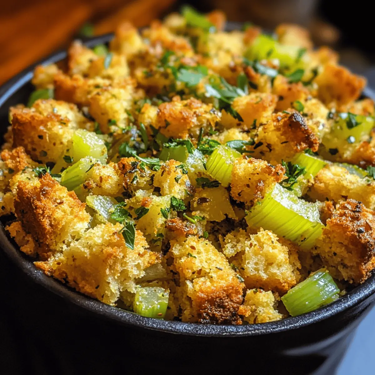 Irresistible Comfort: This recipe combines the sweet, crumbly texture of cornbread with the crisp freshness of celery and fragrant herbs for an unforgettable flavor. Effortless Preparation: Simple steps make it perfect for beginners and busy home cooks alike. Versatile Side: Ideal for holiday feasts or casual weeknight dinners, it pairs beautifully with any main dish. Fresh and Savory: The herbs add brightness, while the celery provides a satisfying crunch, balancing each bite perfectly. Crowd-Pleaser: Loved by all ages, it transforms any meal into a cozy celebration.