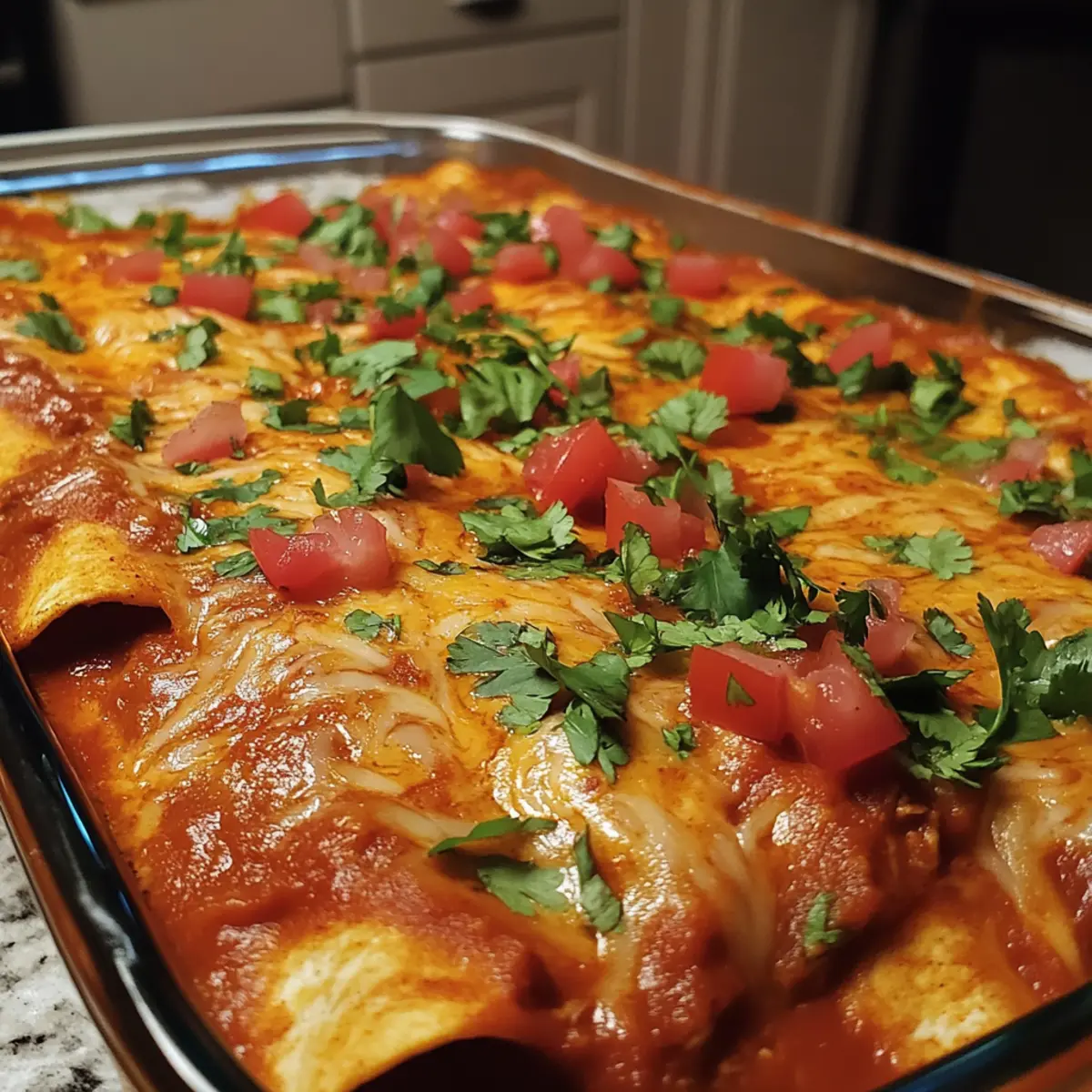 Garnish & serve: Let the enchiladas rest 5 minutes, then sprinkle fresh cilantro and serve warm for the best spicy, comforting flavor.