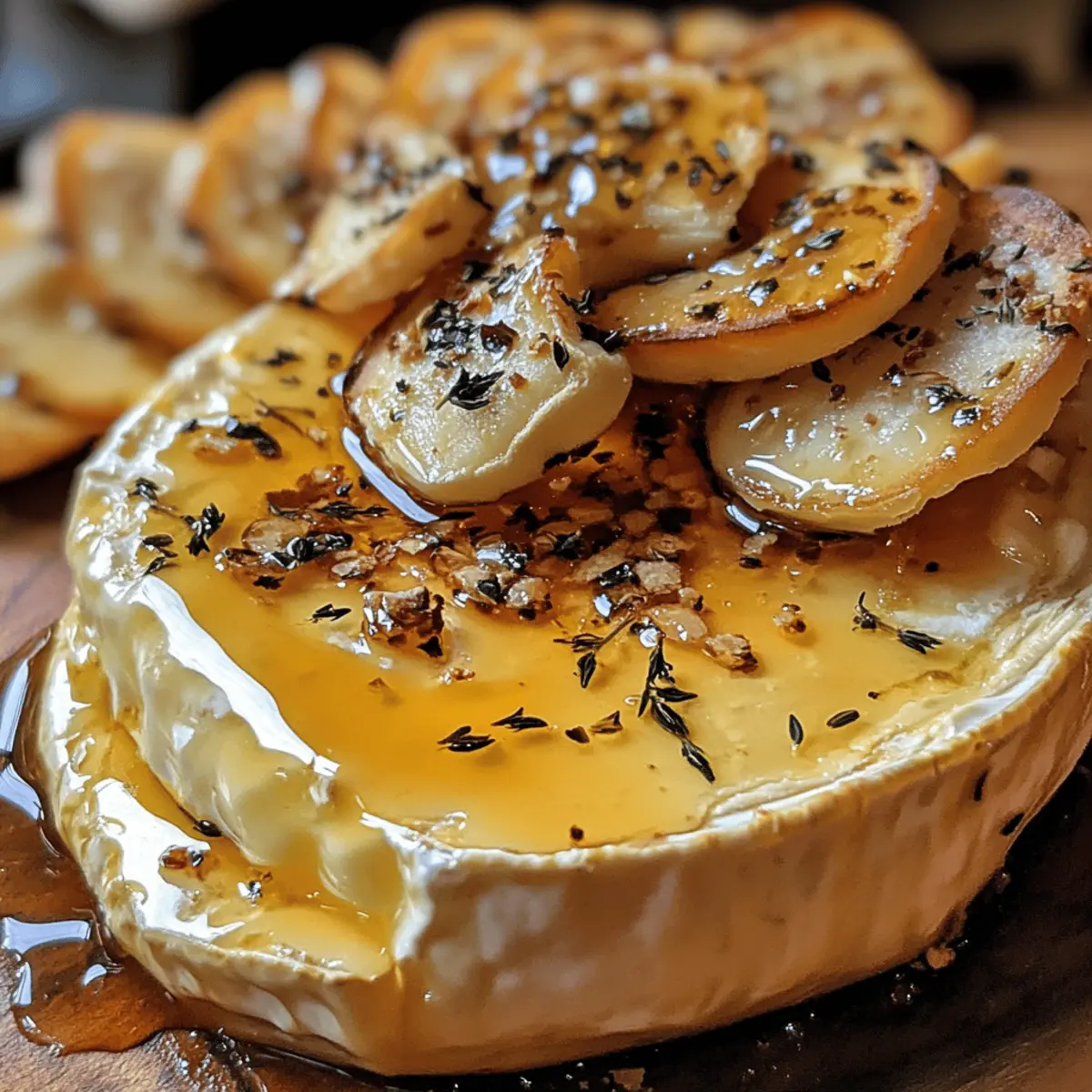 - Drizzle Honey: Immediately after baking, transfer Brie to a serving plate. Drizzle 2 tablespoons of warm honey over top, letting it fill cuts and create glossy golden pools.