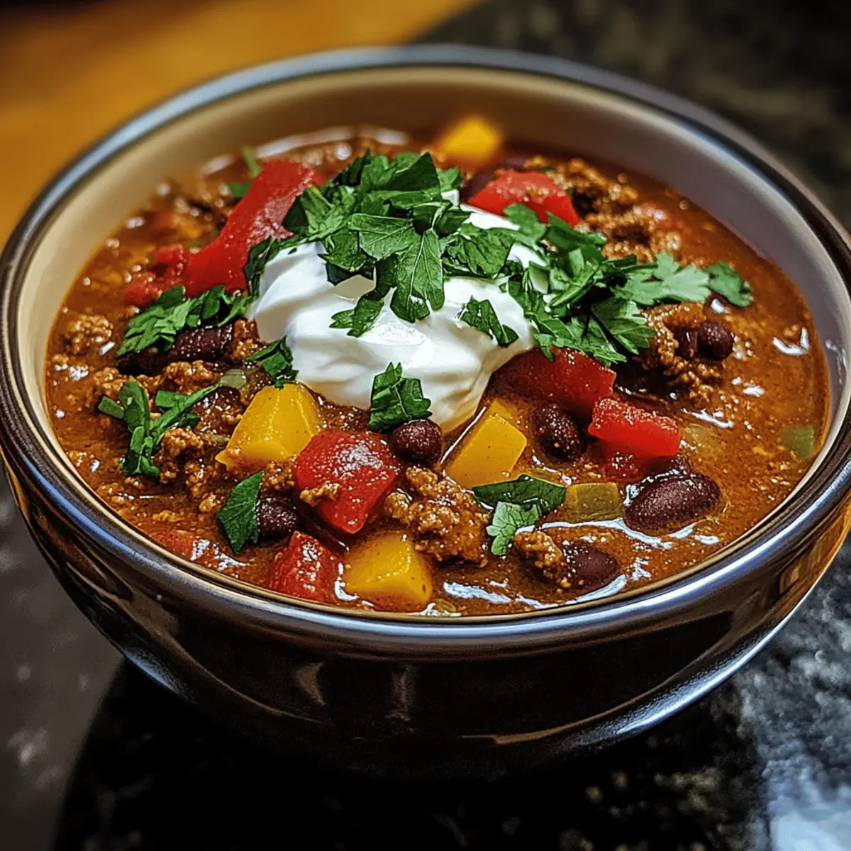 - Sour Cream: A dollop of creamy sour cream on top adds a cooling effect and richness that perfectly balances the robust chili flavors.