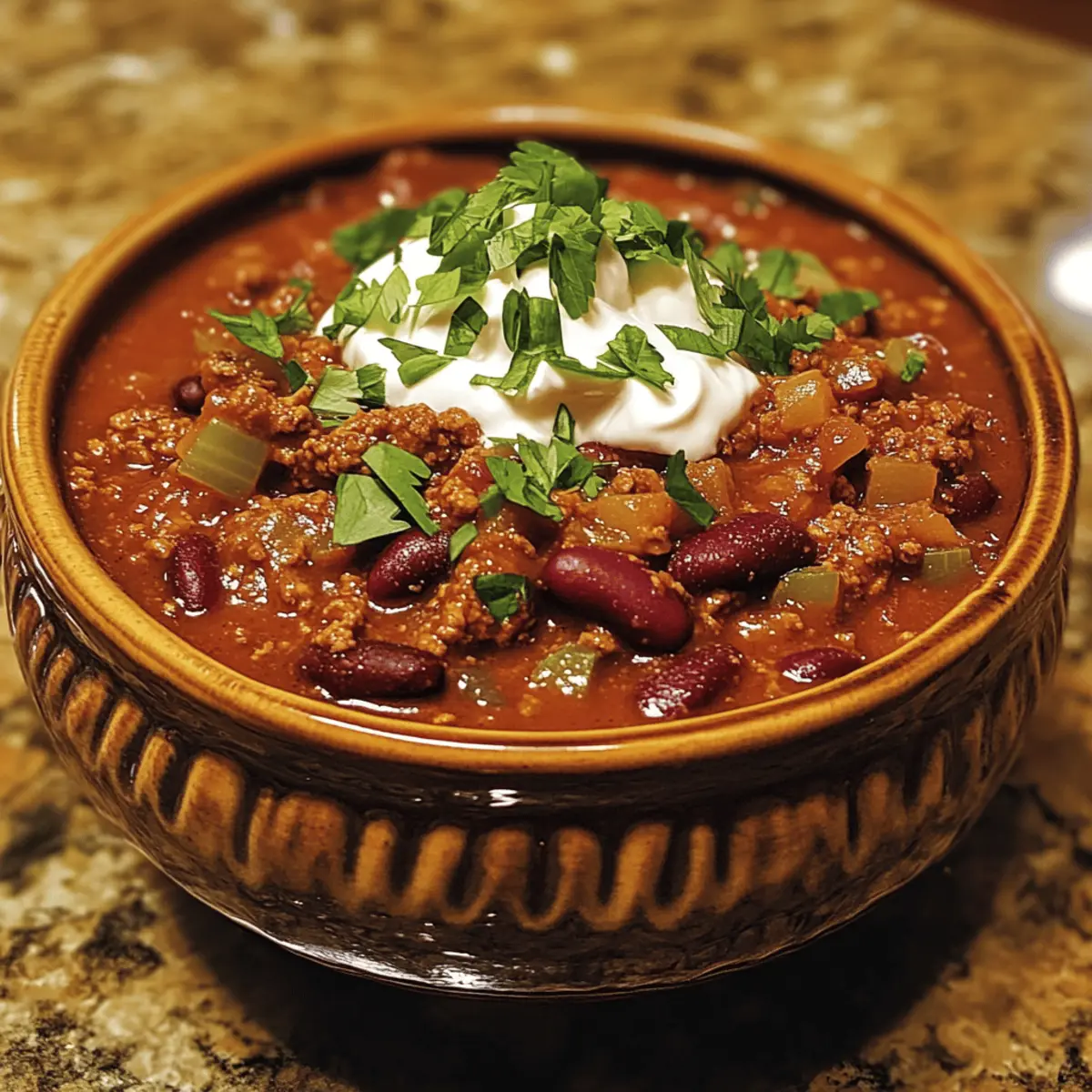 Creamy Addition: Top each bowl of chili with a dollop of sour cream or a swirl of cream cheese for a rich, velvety finish that enhances the flavors.