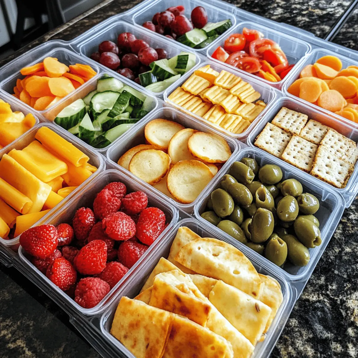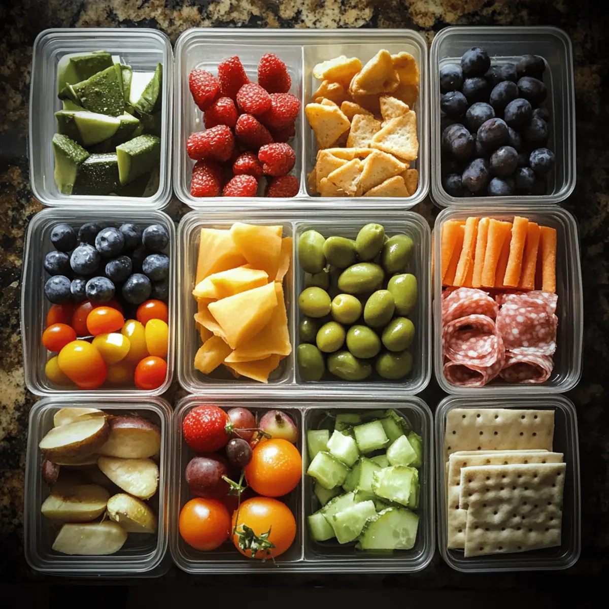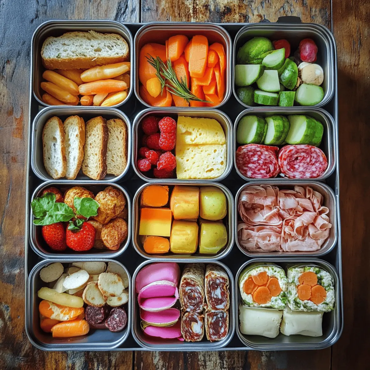- Assemble Your Boxes: Divide ingredients into bento-style containers or reusable lunch trays. Fill each section with cheese, veggies, fruits, and snacks to create a colorful, balanced meal.
