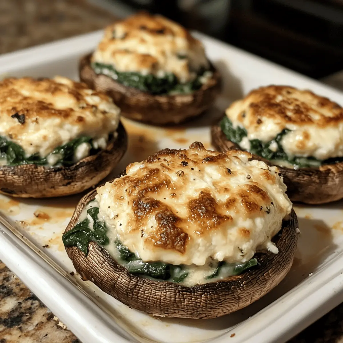 - Stuff caps: Spoon the spinach–goat cheese mixture into each cap, pressing down gently so it fills the cavity evenly and forms a slight mound for optimal flavor distribution.
