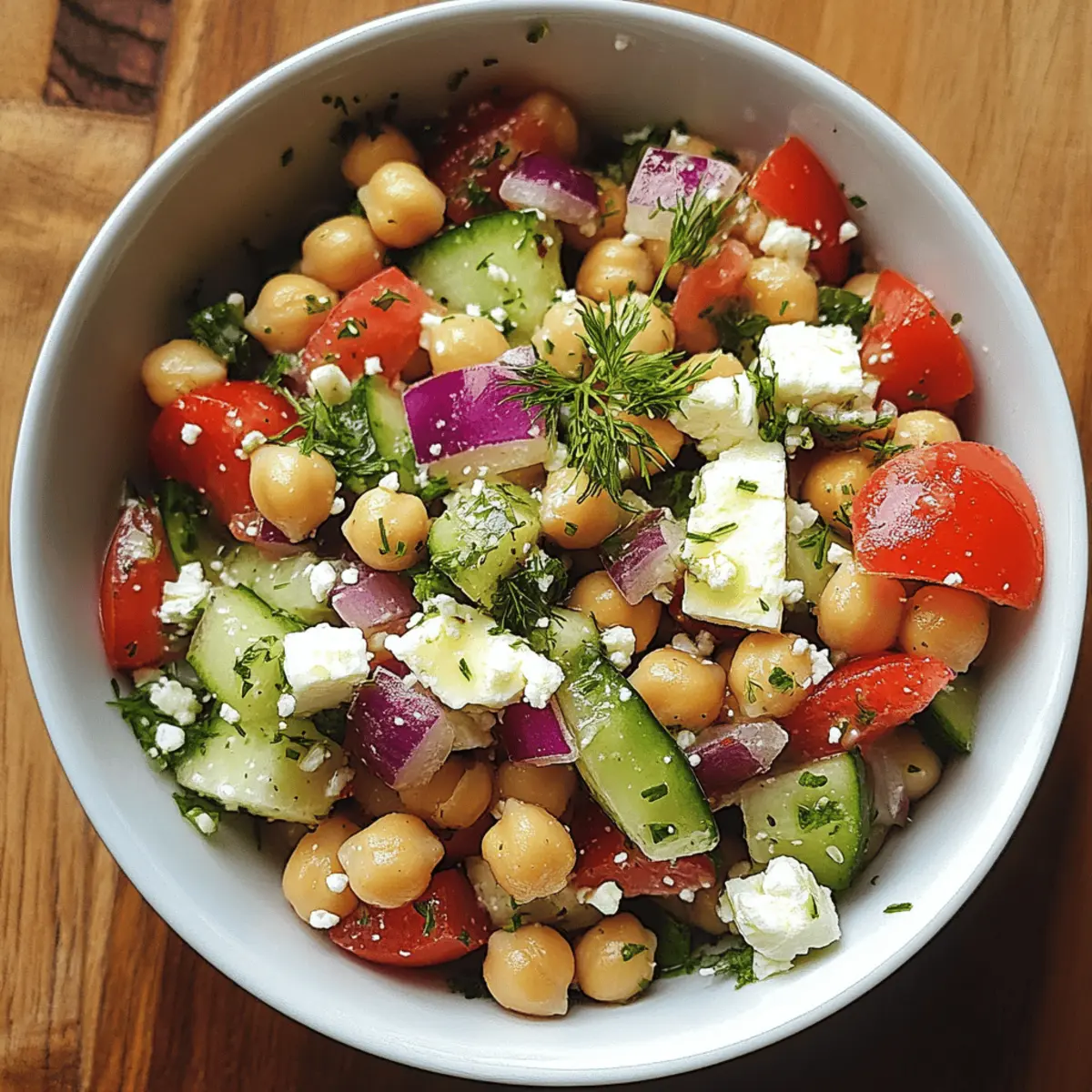 Easy Greek Chickpea Salad with Feta and Zesty Lemon-Dill Vinaigrette