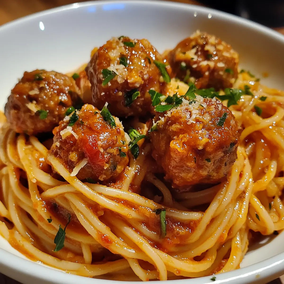 - Toss and Serve: Drain spaghetti, reserving ½ cup pasta water; toss with sauce and meatballs, adding reserved water as needed for silky texture, then garnish with parsley and Parmesan.