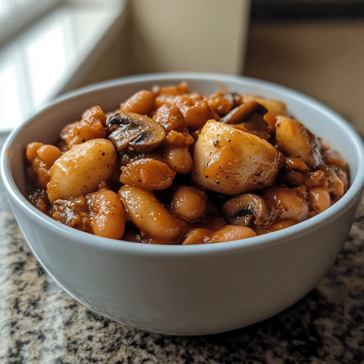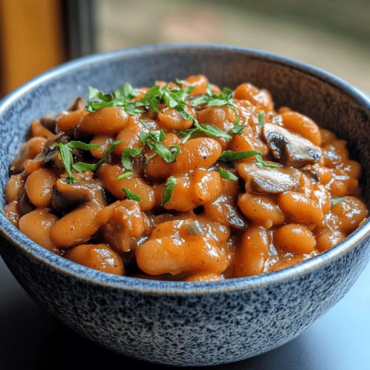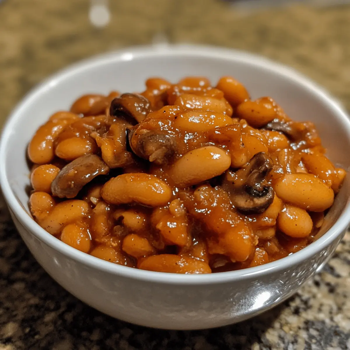 I recommend cremini or button mushrooms for this recipe because they have a firm texture that holds up well when cooked, mimicking the mouthfeel of traditional baked beans. Avoid watery varieties like shiitake, as they can make the dish soggy.