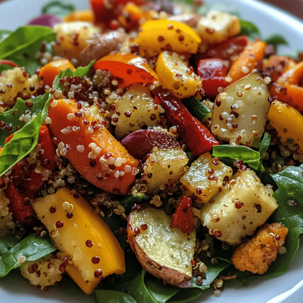 - Combine Salad: Transfer warm quinoa and caramelized veggies to a large bowl. Pour dressing over, gently toss until each grain and veggie is evenly coated and vibrantly glistening.