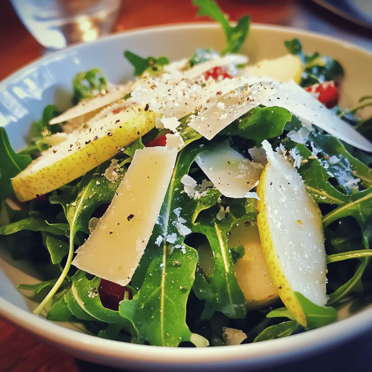 - Fresh arugula – Use peppery, tender leaves for that signature crisp bite in the Arugula and Pear Salad with Parmesan and Lemon Dressing.