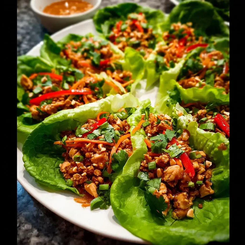 There are some dishes that just taste like sunshine, and these Thai Chicken Lettuce Wraps are pure, vibrant, edible sunshine. I first made them on a sweltering summer evening when the thought of turning on the oven felt like a culinary crime. We were craving something light but substantial, bursting with flavor but not heavy. I remembered a similar dish from my favorite Thai restaurant and decided to try my hand at a homemade version. As I stood at the stove, the kitchen filled with the incredible aromas of sizzling ginger, garlic, and sesame, my skepticism started to melt away. The sauce came together in minutes—a creamy, dreamy peanut concoction that I couldn’t stop tasting. We assembled them right at the dinner table, a beautiful platter of savory chicken filling, a rainbow of fresh garnishes, and a stack of ice-cold, crisp lettuce cups. The first bite was a revelation. The satisfying crunch of the lettuce, the warm, savory-sweet chicken, the cool crispness of the carrots, and the final, luscious drizzle of peanut sauce—it was a symphony of textures and tastes. My family was instantly obsessed. It has since become our go-to meal for warm weather, for healthy-ish weeknights, and for casual entertaining. It’s a dish that feels both incredibly wholesome and wildly indulgent, and it never fails to make everyone at the table happy.
